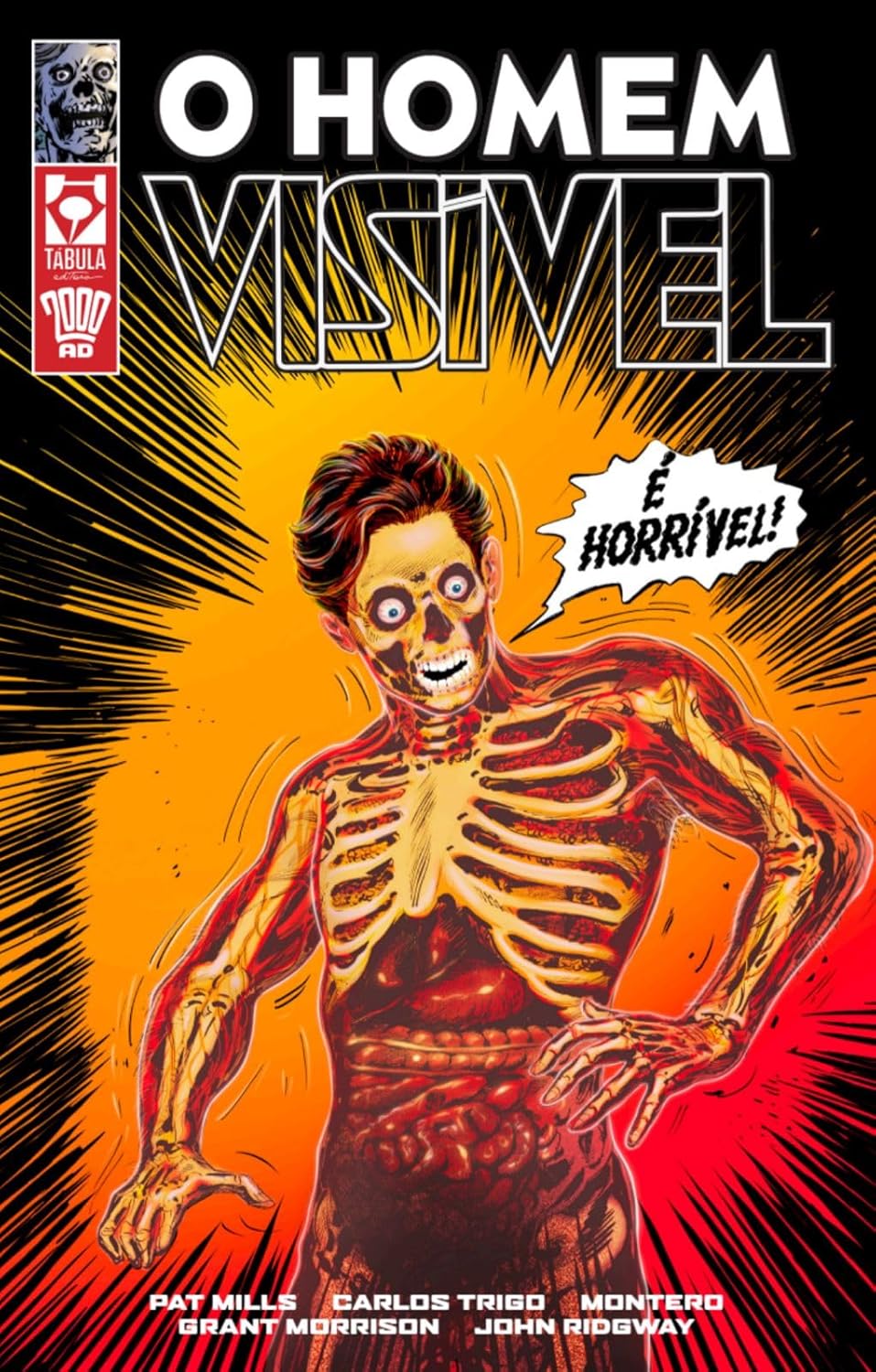 Inédito no Brasil, O Homem Visível é um clássico dos quadrinhos, criado por Pat Mills e Carlos Trigo (com participação de Montero) para a icônica revista inglesa 2000 AD. Com uma história bônus de Grant Morrison e John Ridgway, a HQ é o segundo título do selo UNSPILA da editora Tábula, onde grandes e premiados quadrinhos são publicados com qualidade a um preço camarada, só de alguns pila. Recentemente, a história foi resgatada na coletânea 2000 AD presentes: Sci-fi Thrillers (2014) que publicou histórias dos primórdios da 2000 AD, considerada por muitos a maior e mais influente revista de quadrinhos de ficção científica. Entre seus famosos títulos, destaca-se Juiz Dredd. A primeira aparição do personagem foi em 2000 AD n. 47 (1977) em uma história em 6 partes, terminando seu arco na edição 52. O Homem Visível desde seu lançamento fez muito sucesso, ganhando colecionáveis, spinoff como “Visible Woman”, sendo fortemente inspirado nos clássicos filmes de scifi e terror dos anos 50. Com um história bônus, a HQ terá também Grant Morrison (X-men, Homem Animal) e John Ridgway (Hellblazer e Miracleman). A HQ é em capa cartão de alta qualidade com miolo em PB. Contracapa com arte de Fernando Barreto e Joe Lottley, que também fez a colorização da capa sobre a arte de Carlos Trigo.